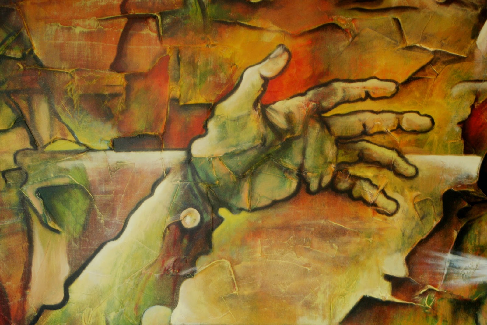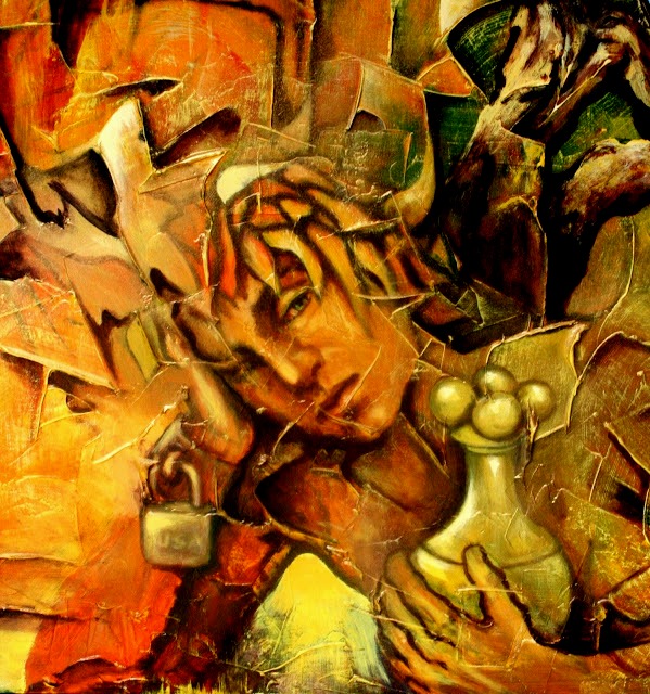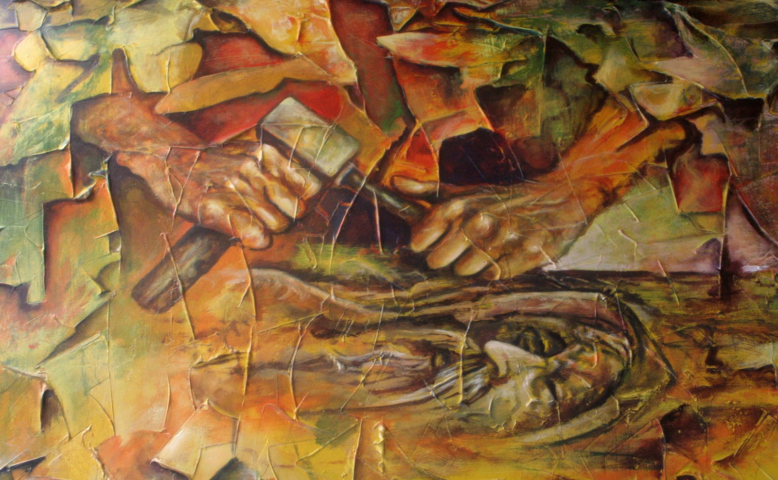 No obstante inscribirse su obra bajo la tendencia surrealista, Jesús Alberto Arbeláez Arce, JALAR, no se ha ligado definitiva o exclusivamente a ella, por una sencilla razón: su propia introspección, paralela a su mirada del mundo y de la vida bajo el común denominador de una profunda sensibilidad, no le ha permitido –ni le ha interesado– desligarse de los problemas –y búsqueda de soluciones– que en su trayectoria le han planteado tanto la realidad social (su pueblo, la provincia, el orbe) como su trabajo pictórico. Ello explica, por ejemplo, la naturaleza de sus exposiciones anteriores; algunas, de carácter temático (Más allá de la madera, Resplandores…), y otras, generales y comprehensivas de su multifacética expresión (Fragmentos…), tanto en eventos de carácter individual como colectivo. Y también explica o hace comprensible su actitud, especialmente reflejada en el conjunto de su obra, en la que (aun siendo capaz de plasmar, con creces –en el lienzo o en la madera o hasta en inverosímiles materiales que a veces encuentra en su camino–, la belleza de los objetos o los detalles cotidianos) sobresale su inconformidad, su rebeldía, su grito, que en realidad es el grito y el clamor de una humanidad compuesta por millones de seres que tienen –tenemos– tanto en común. El dolor, la estupefacción que no podemos soslayar, el amor mismo y antes y después la belleza que proporciona esperanza, permean aquellos materiales que, con su paleta, sus pinceles y sus espátulas, JALAR va convirtiendo en arte. Pero, insisto, el desgarramiento, el desarraigo, el estremecimiento constante y el estado absorto ante la degradación e indecencia de esa especie que se ha autoproclamado la reina y heredera de la tierra, ¡a más de la zona rosa –si se me permite el término– de su trabajo pictórico, por supuesto!, pueblan la obra de JALAR, como presencias hieráticas, inamovibles e inconmovibles al lado de todas las formas de oprobio, como relámpagos kafkianos que hieren las entrañas, como efusiones sanguinolentas de cuerpos que jamás se terminan de contar mientras víctimas y victimarios enceguecen ante extraños resplandores: aquí el rojo jalariano se funde con el amarillo de su eterna experimentación, y, mientras nos regala su mensaje, continúa deleitándose, con alegría sin límites y con dolor inefable, en lo que ha constituido una de sus mayores pasiones: la búsqueda del color.